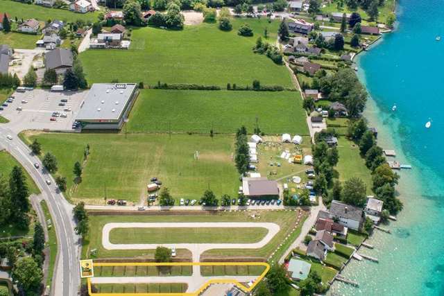 Es handelt sich hier um keinen vollwertigen Campingplatz mit der entsprechenden Anlage, sondern um einen abgesteckten Abstellplatz für Wohnmobile auf einer Wiese in der Nähe zum See.